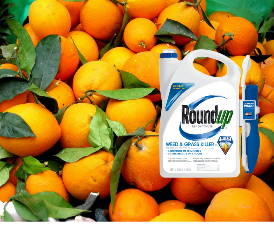 Recent testing revealed that every one of the five top orange juice brands Moms Across America sent to an accredited lab tested positive for glyphosate weed killer. Glyphosate is the declared active chemical ingredient in Roundup, manufactured by Monsanto, and 750 other brands of glyphosate-based herbicides. Roundup is the most widely used herbicide in the world, often sprayed as a weed killer between citrus trees, found in irrigation water and rain.
