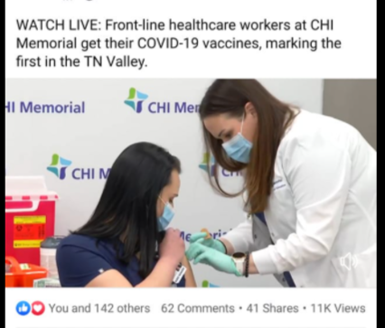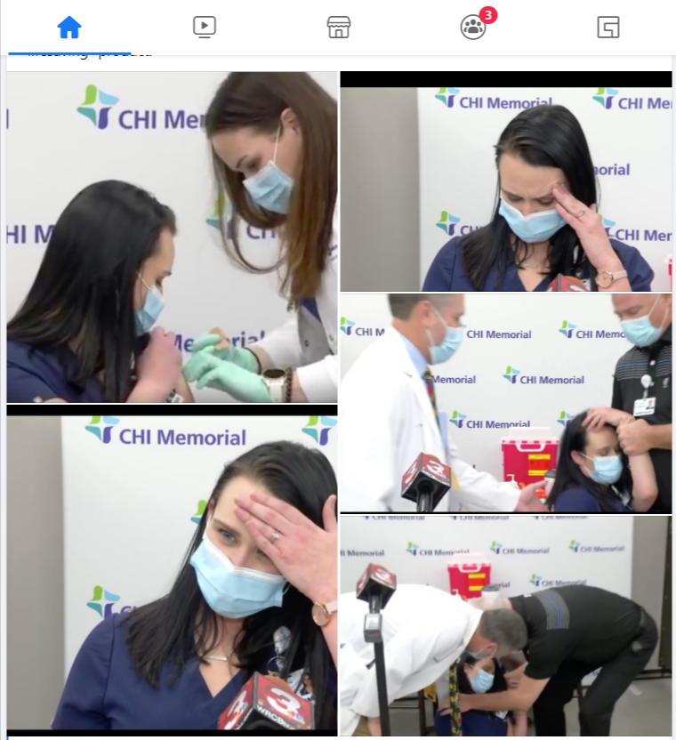 Perhaps a publicity stunt gone wrong. The CHI Memorial Hospital in Tennessee broadcasts vaccinating several members of their healthcare management teams. During our live stream of the drug injections at CHI Memorial, Nurse Manager Tiffany Dover while speaking to the media about receiving the drug injection mentioned she started feeling dizzy. SHE FAINTED 17 minutes AFTER SHOOTING UP. Thankfully one of the doctors behind her caught her.