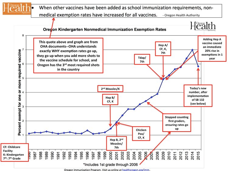As Oregon added vaccination requirements time and again to the school schedule between 2000 and 2015, they watched exemptions rise in kind, just as they expected.