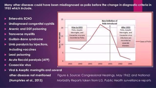 After the introduction of the polio vaccine, they began to test for and confirm suspected or reported cases of polio, thereby distinguishing between cases of polio and the other “polio-like” illnesses. By simply redefining the diagnostic criteria for what would be reported as “polio”, and no longer mislabeling polio-like illnesses as “polio”, this created an artificial drop in polio cases. The documentary “Vaccination: The Hidden Truth” (19:15-20:05) explains how this phenomenon also occurred in South America, showing that after the introduction of the polio vaccine, the reported or “notified” cases of polio actually increased, while the “confirmed” cases declined.