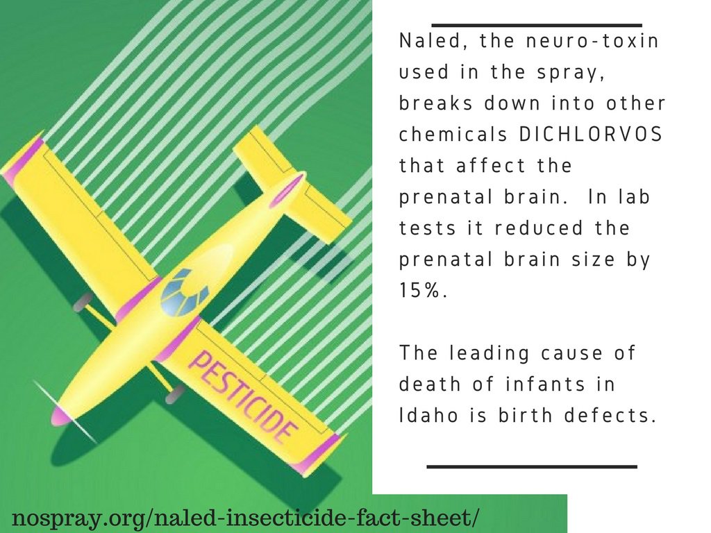 Naled and the chemical it breaks down into contain toxins known to pass through the placenta and affect brain size by as much as 15% in lab tests. http://nospray.org/naled-insecticide-fact-sheet/