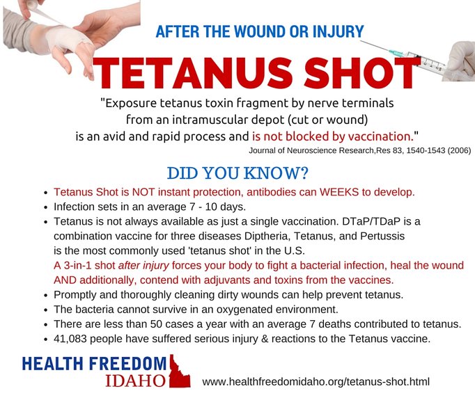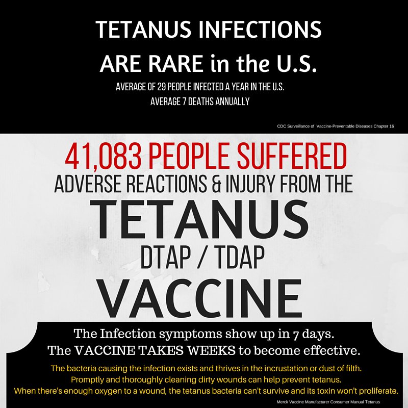 TETANUS FACTS: Clearly most doctors don’t know these (or do know and lie about) since they give the DTaP vaccine for even sinus infections and any minor cut… but YOU should know: