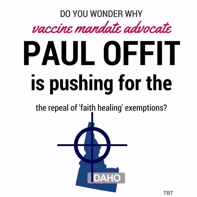 Dr. Paul Offit has joined a Statewide campaign calling for changes in our state laws. It begs the question from Health Freedom Advocates, “Is Dr. Offit sincerely interested in protecting Idaho’s children or just self-interested?”
