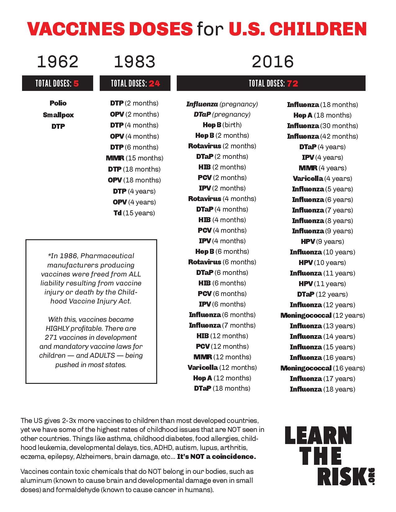 As of 2017, the CDC’s childhood vaccine schedule includes 56 injections of 30 different vaccines. It is only when the CDC adds a vaccine to its recommended vaccine schedule that the manufacturer is granted immunity from liability for vaccine injuries.