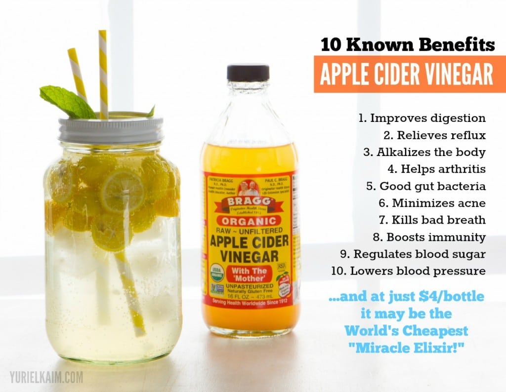 Even though it’s acidic, apple cider vinegar leaves an alkaline ash after it’s digested and restores the pH balance of the body. This is why people hail ACV for all things stomach, digestion, bacterial illness, diarrhea, yeast, and urinary tract infection. (Lemons are another example of something super awesome acidic that leave an alkaline ash….and we use those for everything too.)