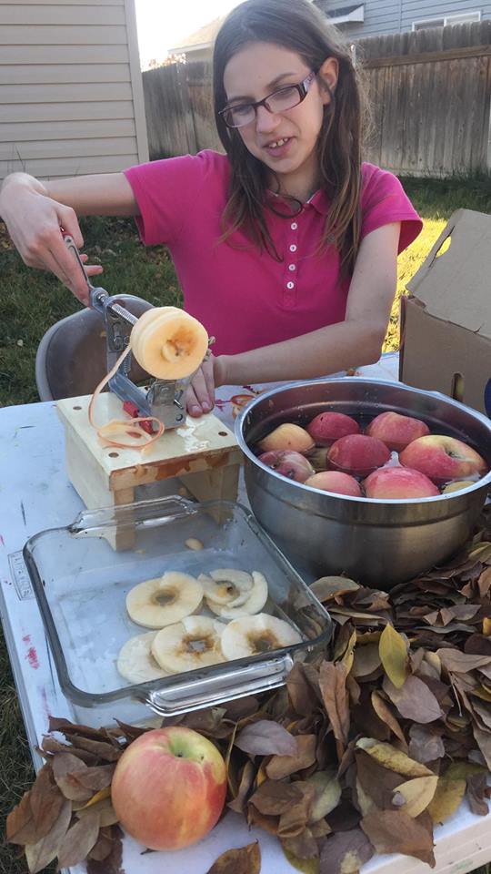 Yep. We tried. Starting with our organic apples from our favorite Market – Cliff’s Country Markety Caldwell has organic apples CHEAPER than the low-spray the they carry as well. We got us a couple big boxes. Kids learned to peel and core and consumed the insides and saved the outsides and cores for our vinegar!