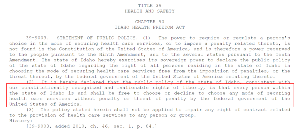 IDAHO HEALTH FREEDOM ACT